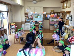 保育園に着くと園長先生が待っていてくれてトトロのシールを貼ってもらいました☺ そしていよいよ楽しみにしていたお弁当の時間です!子どもたちはワクワクしながらお弁当箱を開けて嬉しそうに食べていました。