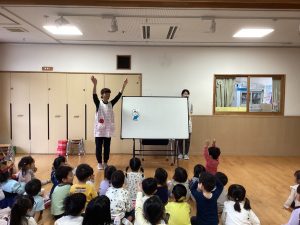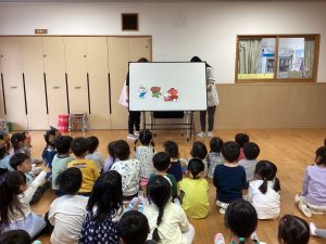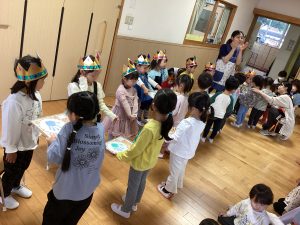 今月は14名のお友だちがお祝いしてもらいました。誕生児へのインタビューは『好きな動物は何ですか?』でした。子どもたちは、「チーターです!」「うさぎです!」など堂々と言えたり、恥ずかしそうにする姿も見られました。インタビューの後には、歌とカードのプレゼント🎁みんな嬉しそうにしていました。
