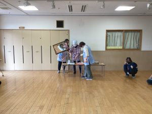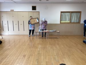 次は栄養士の先生が、芋煮汁を実際に作るデモンストレーションを見せてくれました。お肉、人参、大根、さつまいも、こんにゃくと材料がお鍋に入るたびに「見せて見せてー!」と興味津々の子どもたち。最後にお味噌を入れて出来上がり!給食を楽しみにお部屋に戻った子どもたちでした。