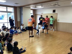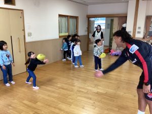 4.5歳児は、選手と一緒にゲーム遊びもしました。