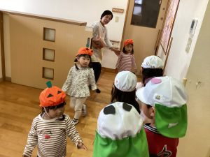 1~5歳児クラスは手作りの仮装をして、ハロウィンを楽しみました。
