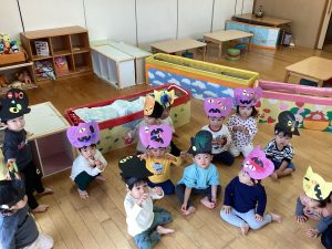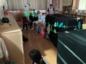 5歳児はお部屋をジャングルのお化け屋敷にし、お化け屋敷に来た子どもたちを案内したり、「わぁ!」と驚かせて楽しませてくれました。