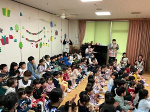 でも、最後に子ヤギたちがみんな、おおかみのお腹から出てきたときには、「わぁ!」「よかったね!」と笑顔になりました😆 劇の後には、みんなでクリスマスの歌を歌いました。子ヤギたちも一緒に歌ってくれて楽しい会になりました。人形劇の後は、年長クラスのりんご組さんが、キャンドルサービスをしました。優しい光に子どもたちもおだやかな表情になっていました。
